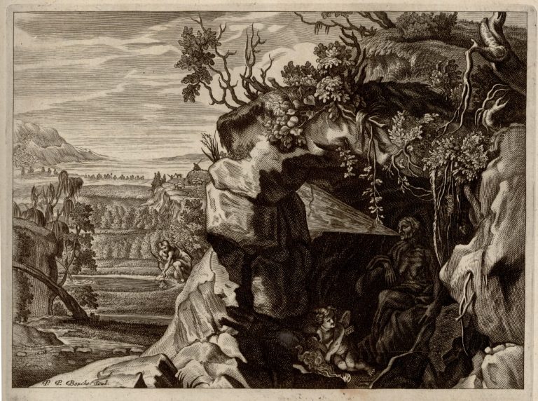 Mědirytina s leptem v rámečku 157 × 215 mm signovaná P. P. Bouche. Scul.