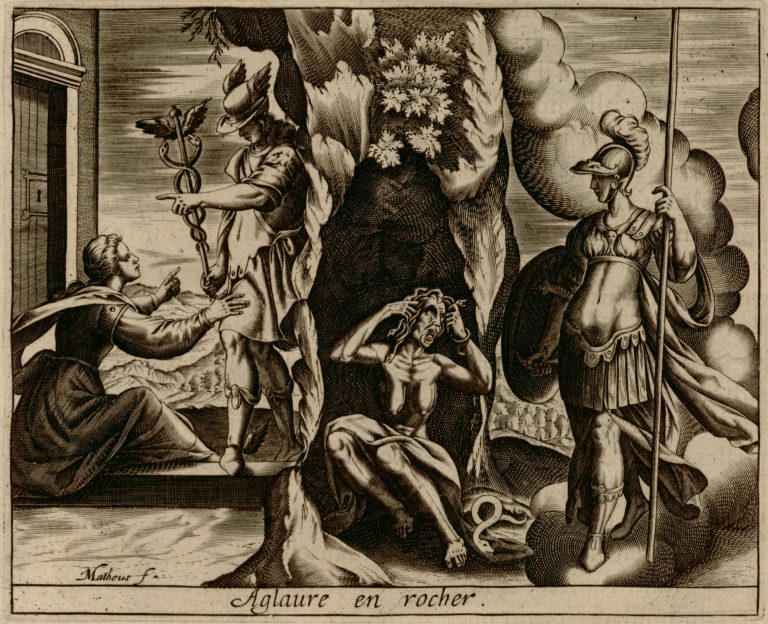 V dolní části rytý francouzský nápis Aglaure en rocher.