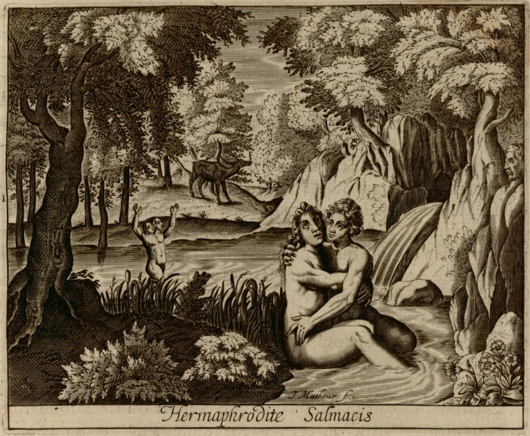 V dolní části rytý francouzský nápis Hermaphrodite Salmacis