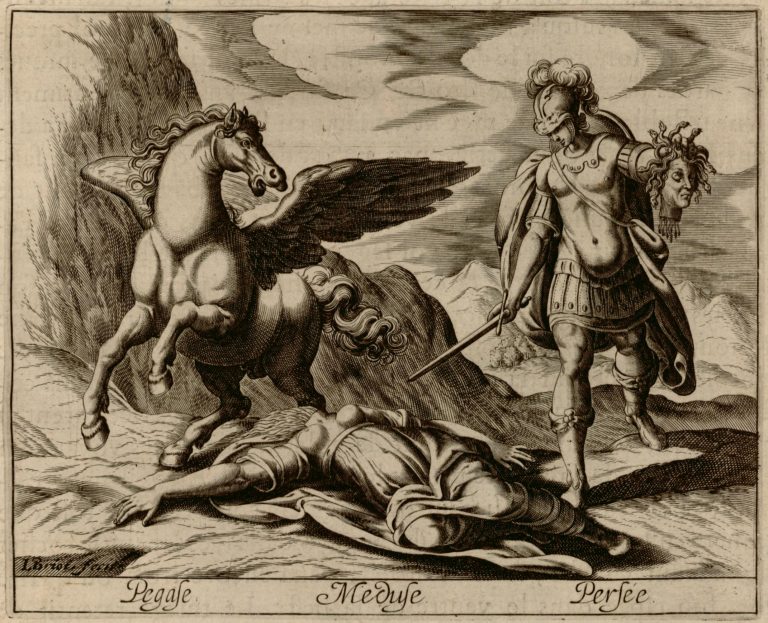 V dolní části rytý francouzský nápis Pegase. Meduse. Persée.
