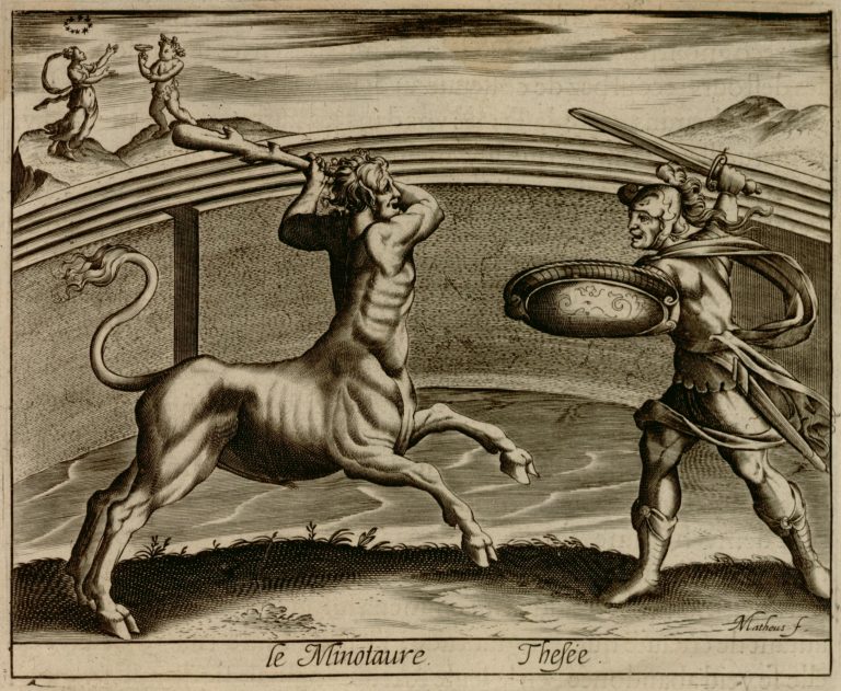 V dolní části rytý francouzský nápis le Minotaure Thesee.
