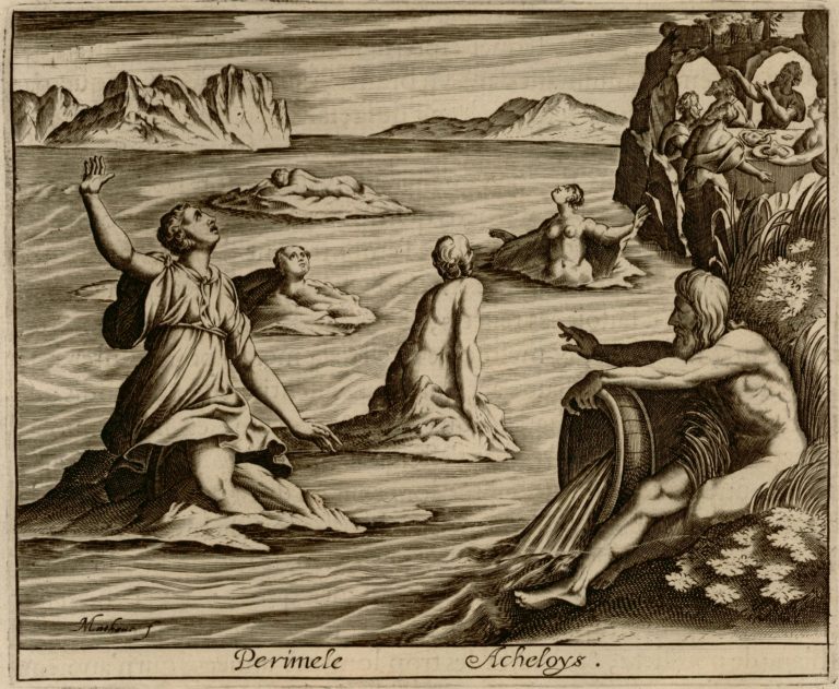 V dolní části rytý francouzský nápis Perimele Acheloys.