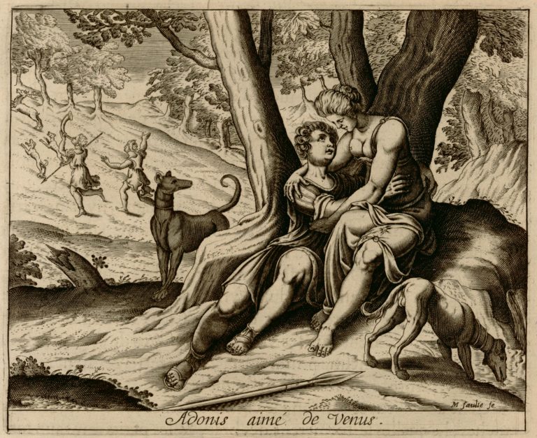 V dolní části rytý francouzský nápis Adonis aimé de Venus.