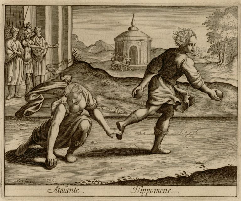 V dolní části rytý francouzský nápis Atalante. Hippomene.