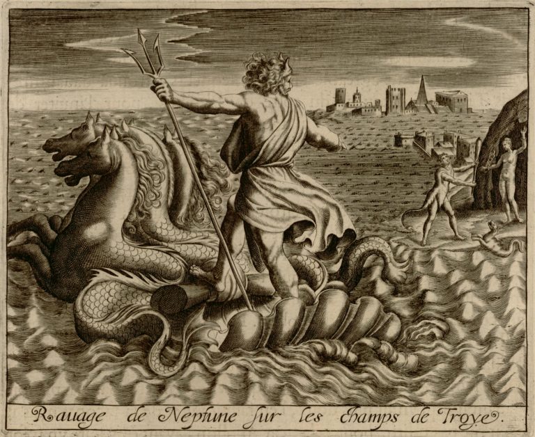 V dolní části rytý francouzský nápis Rauage de Neptune sur les champs de Troye.