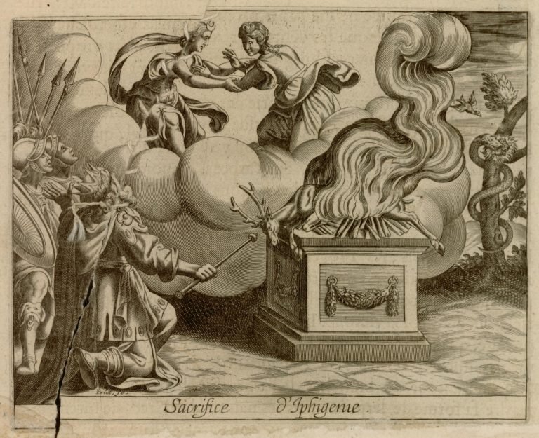 V dolní části rytý francouzský nápis Sacrifice d‘ Iphigenie.