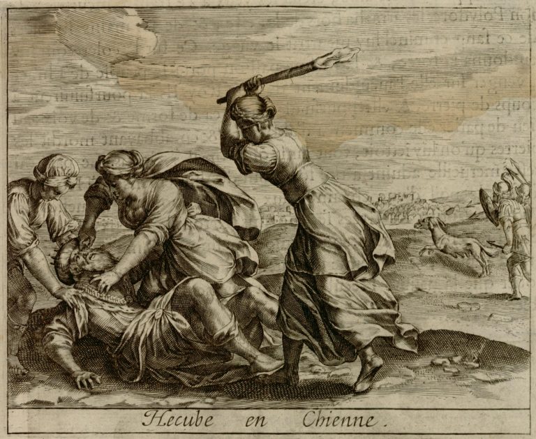 V dolní části rytý francouzský nápis Hecube en Chienne.