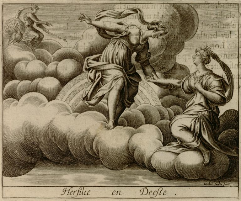 V dolní části rytý francouzský nápis Hersilie en Deesse.