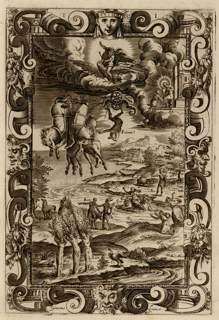 - Zeus (Iuppiter) v oblacích svrhává Kykna, Faëthonta a sluneční vůz