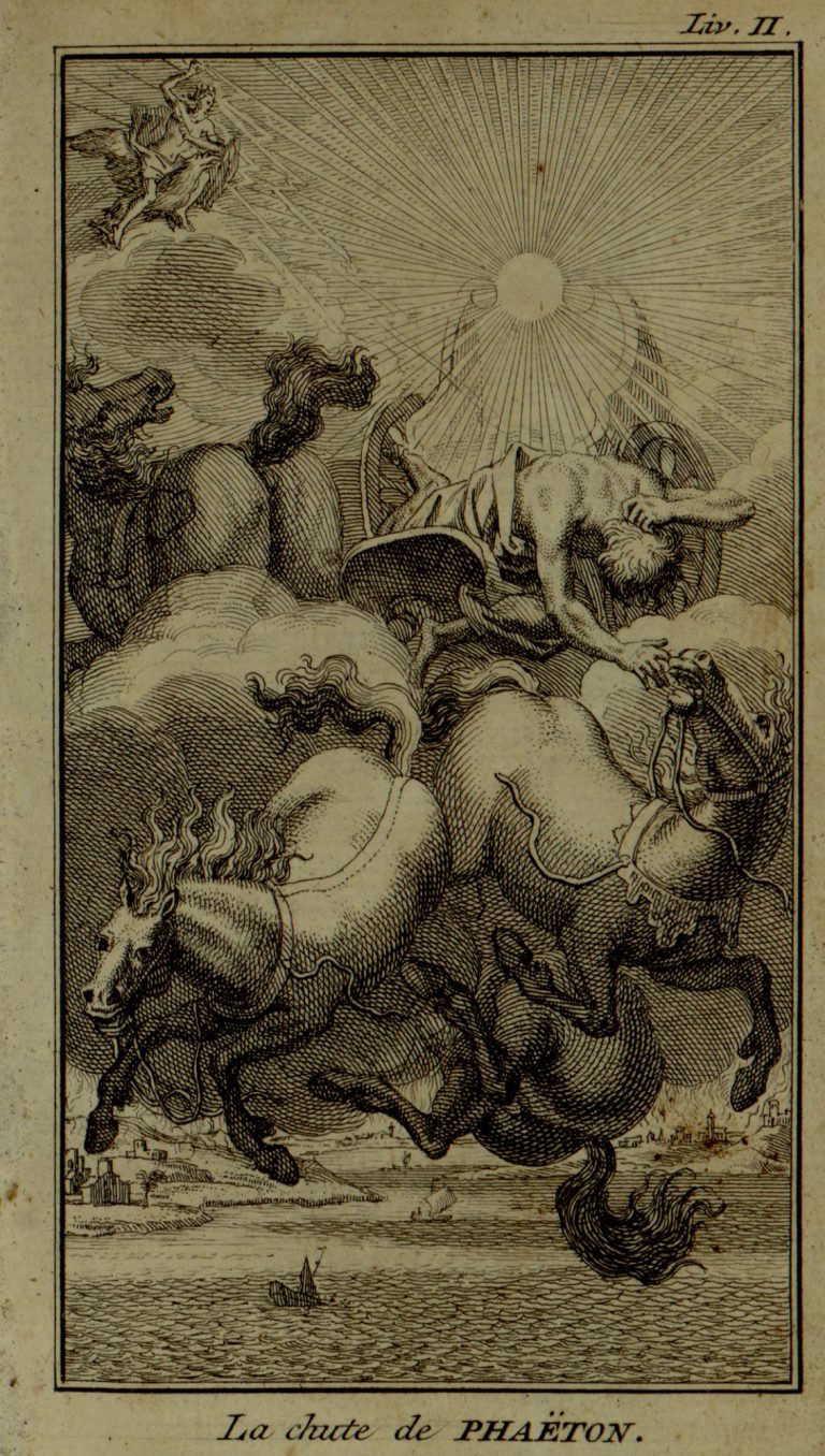V dvojrámečku, v horní části označení Liv. II., pod rámečkem francouzský text La chute de PHAËTHON.