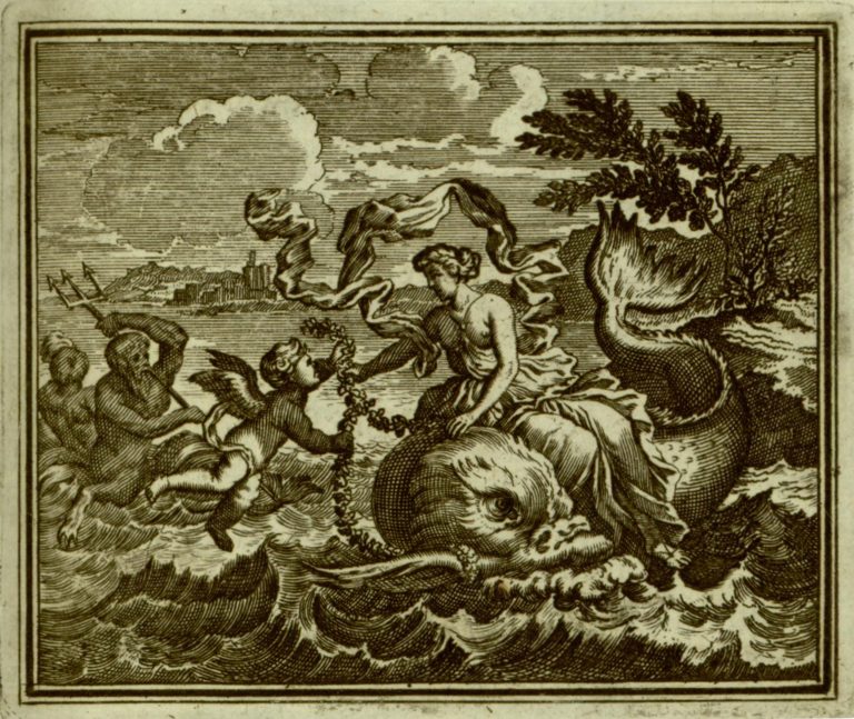 V moři s vlnami nymfa Melanthó sedí na delfínovi, ve kterého se proměnil Poseidón (Neptun). Malý Erós (Amor; Cupido) ji podává květinový řetěz jako udidlo. Nalevo Tritóni – jeden troubící na lasturu a druhý s Poseidonovým (Neptun) trojzubcem.
