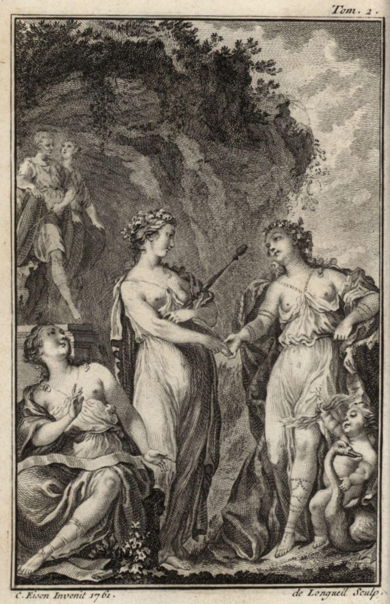Mědirytina v dvojrámečku 114 × 73 mm signovaná C. Eisen Invenit 1761. de Longueil Sculp.