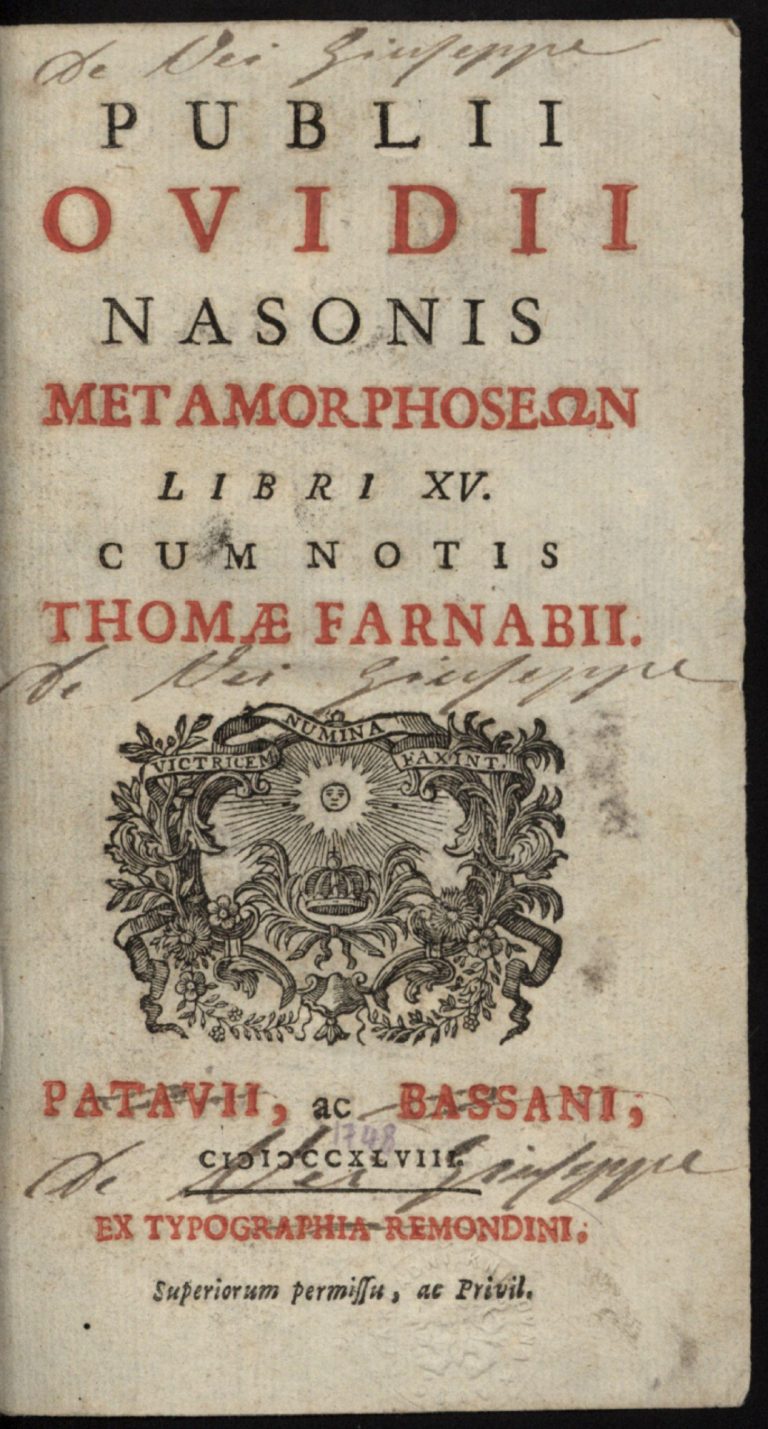 Nakladatelské údaje (knihověda): Padova, Bassano del Grapa; Remondini (tiskař)