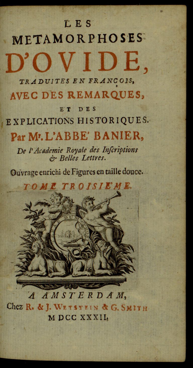 Název (knihovědný popis): METAMORPHOSES … TOME TROISIÉME