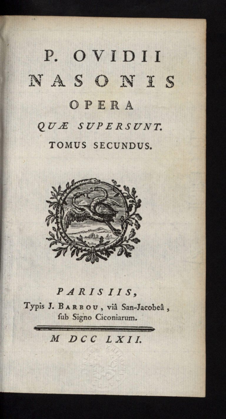 Opis impresa: PARISIIS, Typis J. Barbou, viâ San-Jacobeâ, ſub Signo Ciconiarum. M DCC LXII [=1762] (Literæ quibus impreſſus est hic tutor, a P. S. Fournier Juniore inciſæ ſunt.)