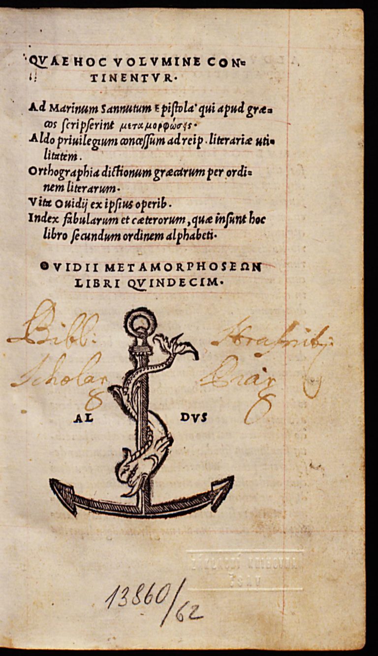 Nakladatelské údaje (knihověda): Venezia: Manutius, Aldus, 1502